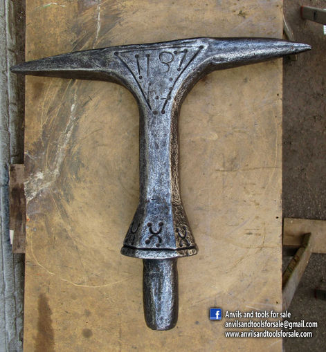 FOR SALE - ID 1635 – Anvil 79 lb - Stake - Century : 17th - Dated : 1687 – Engraved : IHS (IESUS, HOMINUM SALVATOR) - Manufacturer : unknown - Length (inch/cm) : 24 /61 - Width (inch/cm) : 3-2/8 /8,5 - Height (inch/cm) : 21 /53 - Weight (lb/kg): 78,8 /36 - Shape : France - Price : Ask for price sending an email with ID number to anvilsandtoolsforsale@gmail.com - Shipping worldwide.